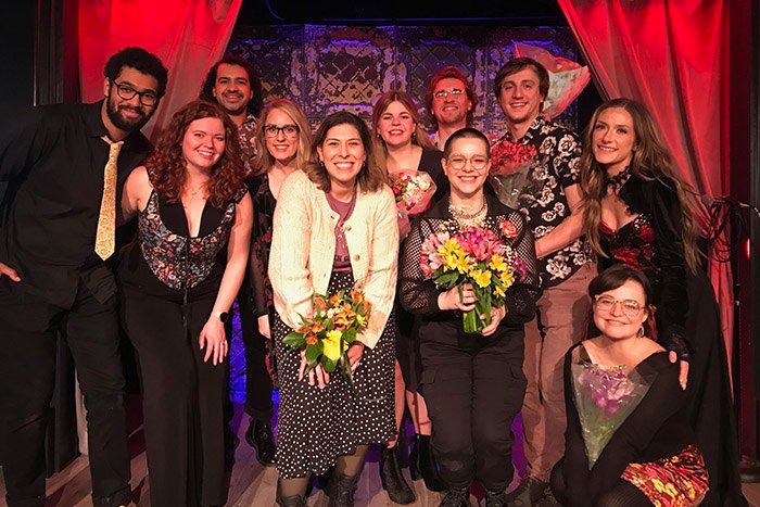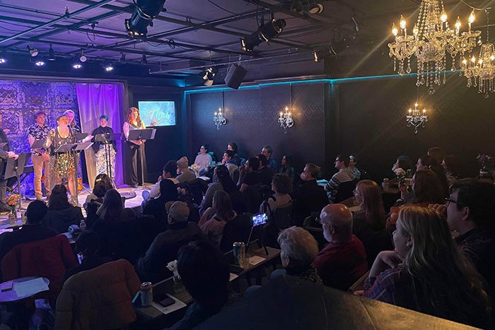 Braving the deepest chill, audience members and performers alike gathered at The Den Theatre to embrace the warmth of community. In the Den’s newly established cabaret space, packed full to the seams with guests, a merry assortment of ensemble members and artistic associates elicited several rounds of applause for their timely entertainment. Performances included recitations of favorite sonnets and musical performances paying tribute to love or spring’s first blooms.